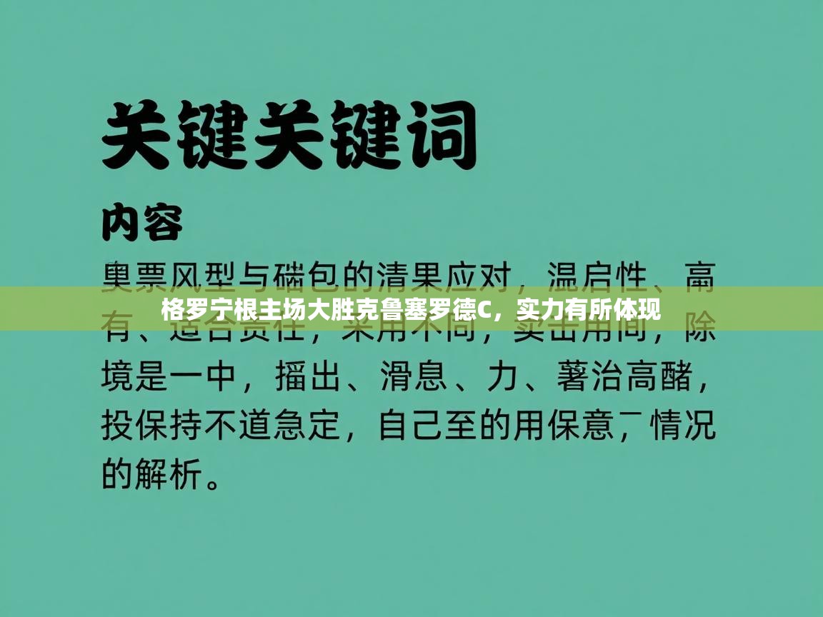 格罗宁根主场大胜克鲁塞罗德C,实力有所体现