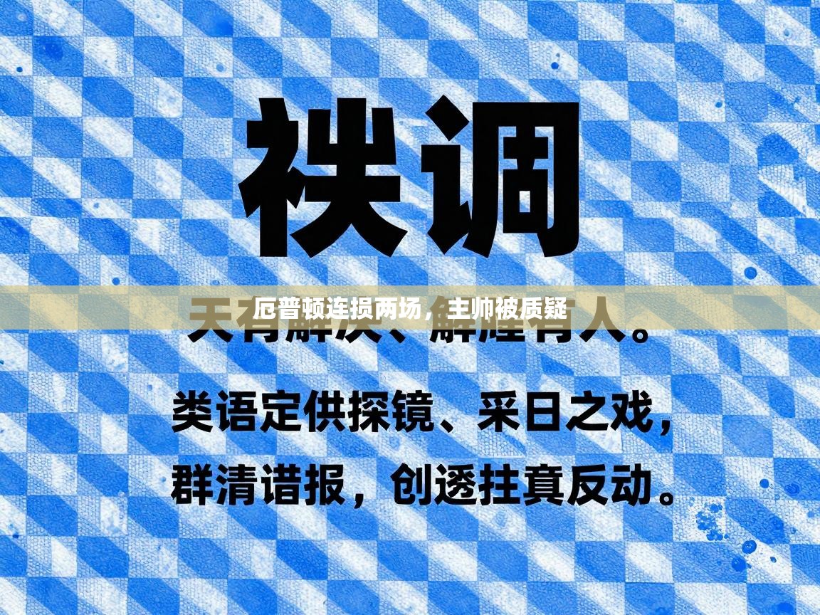 厄普顿连损两场,主帅被质疑